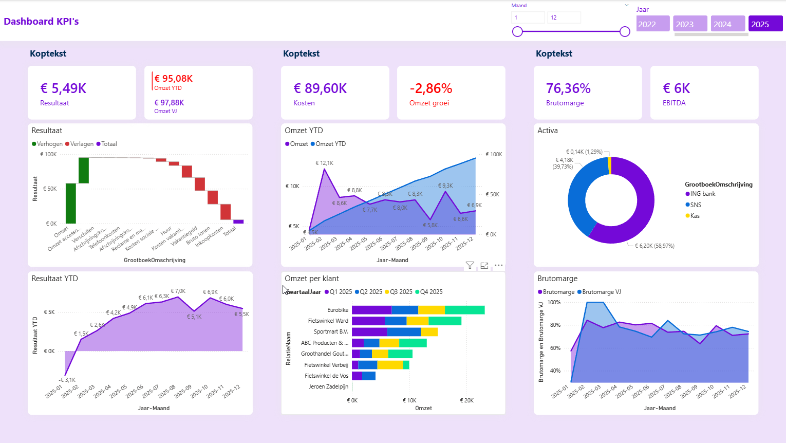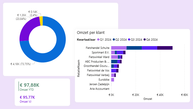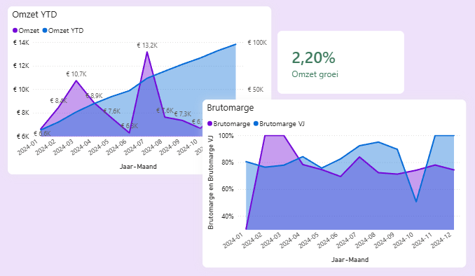 Met slimme Power BI dashboards krijg je realtime inzicht in financiën, klanten en prestaties van je hele organisatie.